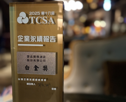 雲品國際酒店再次榮獲 2025年「TCSA台灣企業永續獎」白金級2025-12-01由台灣企業永續學院主辦的「第15屆TCSA台灣企業永續獎」於11月底揭曉。 雲品國際在再次獲得服務業第二類白金獎的榮耀,雲品持續透過實質行動將長期深耕的永續成果讓社會大眾看見......more https://www.fdc-i.com/wp-content/uploads/2025/12/2025-TCSA-永續報告書「第二類白金級」-scaled.jpg 2560 2039 maxine.chou /wp-content/uploads/2020/06/FDC-logo雲品藍.png maxine.chou2025-12-01 14:02:192025-12-19 14:06:28雲品國際酒店再次榮獲 2025年「TCSA台灣企業永續獎」白金級